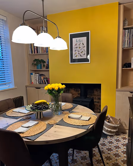 - Warm yellow shades bring a sunny and cheerful atmosphere to a space, making it feel lively and welcoming, perfect for kitchens, living rooms, and play areas.