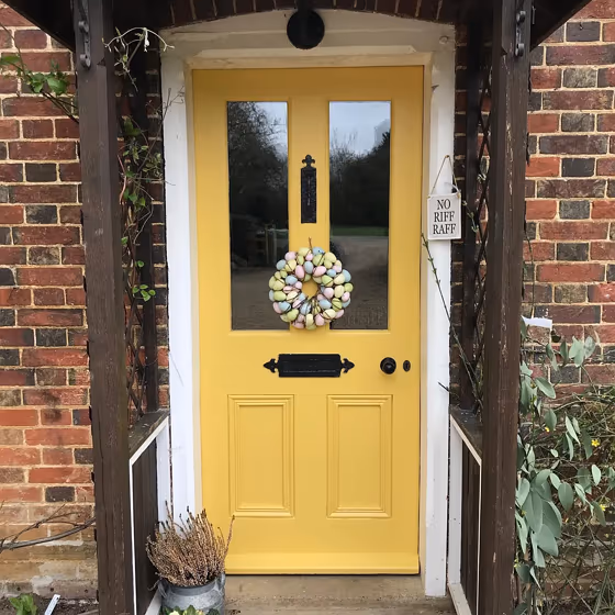 Looking for a fresh new look for your house exterior or starting from skretch? We’ve collected pictures of real-life homes that have been painted with this warm hue. Find inspiration for your house’s exterior, front doors, gates, shutters, frames or windows.