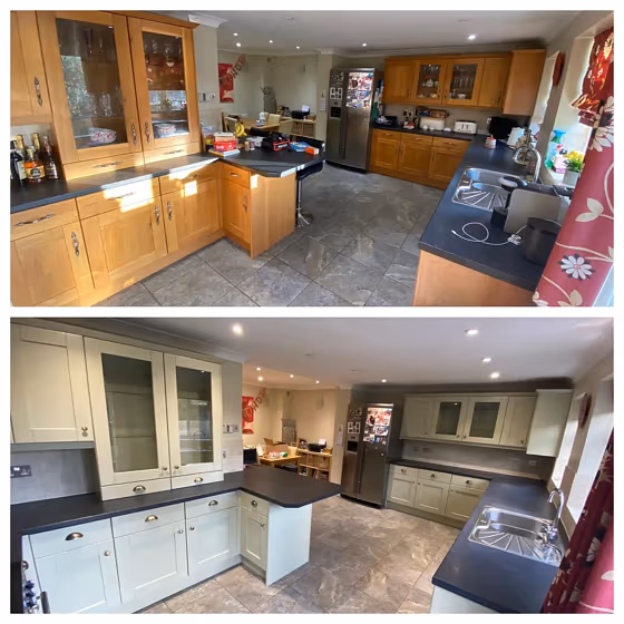 Farrow and Ball 75 on kitchen cabinets (4 photos)
