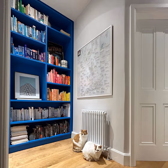 This color scheme is a combination of two shades that are opposite each other on the color wheel. The high contrast between these colors creates a vibrant and dynamic visual effect. For the color Blackened with a orange hue, complementary colors are those with a blue hue close to 210, such as Farrow and Ball Selvedge and Wine Dark.