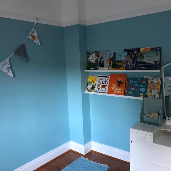 The color Blue Ground (Farrow and Ball 210) brings a sense of serenity and depth to any space it graces. This soft and sophisticated hue is versatile, pairing beautifully with warm neutrals like a soft cream or sandy beige for a calming and balanced look. For a more striking contrast, consider pairing Blue Ground with a deep charcoal or rich navy to create a bold and modern aesthetic. The timeless appeal of Blue Ground makes it an excellent choice for any room, adding a touch of elegance and tranquility to your interior design palette.
