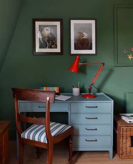 Farrow and Ball's Calke Green is a classic, deep olive green color that is inspired by the richly-pigmented oil paints found at Calke Abbey. It has a warm, earthy undertone that can create a cozy and inviting atmosphere in any room. Calke Green pairs well with other natural colors like beige, cream, and wood tones, making it a great choice for traditional and rustic interiors. However, it can also add a sophisticated touch when combined with modern decor and pops of bright colors.
