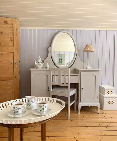 Farrow and Ball Calluna is a beautiful, muted, and sophisticated purple-grey color. It has a calming and soothing effect on the eye, making it perfect for bedrooms or living rooms. This paint color pairs well with natural wood tones, crisp whites, and soft pastels for a harmonious and balanced look.