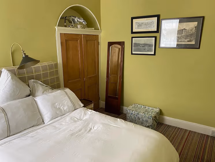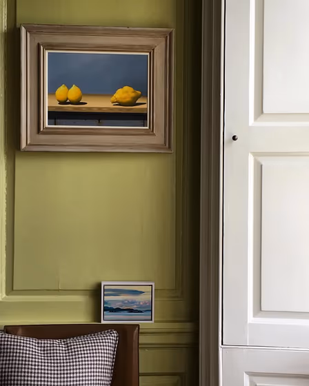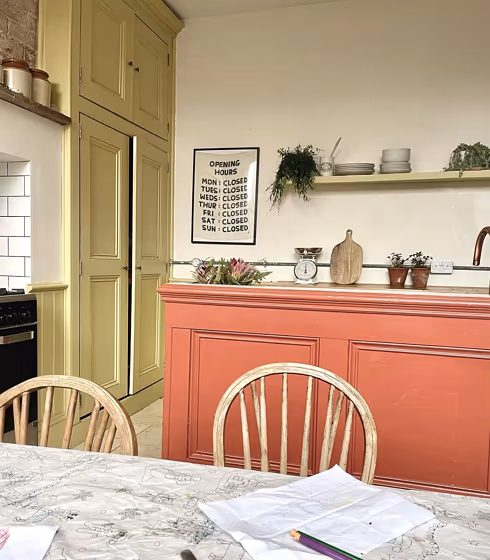 This color scheme is a combination of two shades that are opposite each other on the color wheel. The high contrast between these colors creates a vibrant and dynamic visual effect. For the color Churlish Green with a orange hue, complementary colors are those with a blue hue close to 232, such as Farrow and Ball Wine Dark and Pitch Blue.