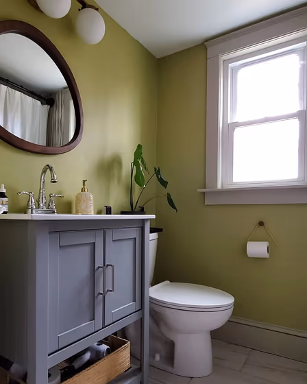 Let’s dive into a full Churlish Green paint color review. Take a look at pictures of real interiors and exteriors painted with beautiful 251. Find out if this gorgeous warm green paint color would look great on your living room walls or trims, kitchen cabinet, bedroom accent wall, bathroom or house exterior.