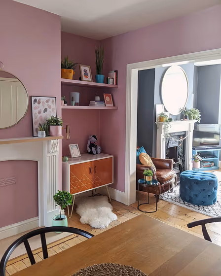 Check out this stunning Mid-tone color used in real living rooms. Explore how this Pink shade can create a unique space