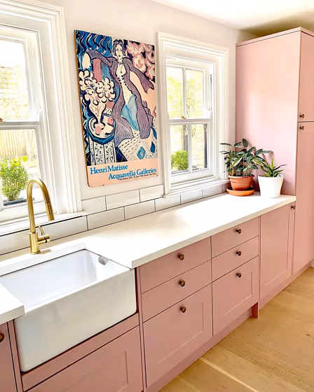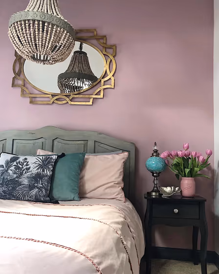 Farrow and Ball Cinder Rose is a beautiful dusky shade of pink. Cinder Rose has barely any of the yellow pigment found in most pinks, making it feel bluer. This romantic nurturing color can be used in kitchens, bathrooms, bedrooms, and garden rooms.