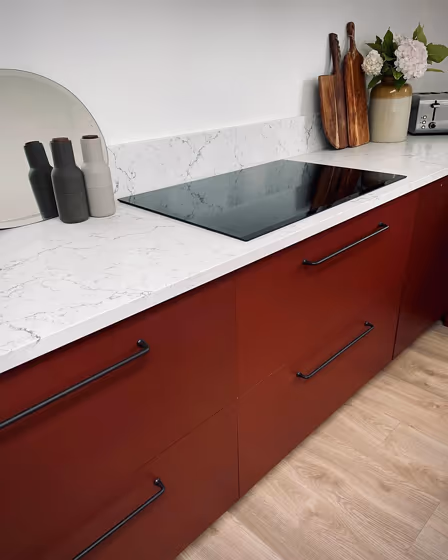- Warm red shades add a vibrant and passionate touch to a room, creating a dynamic and energetic atmosphere, perfect for dining rooms, living rooms, and accent walls.