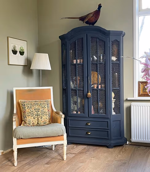 This color scheme is a combination of two shades that are opposite each other on the color wheel. The high contrast between these colors creates a vibrant and dynamic visual effect. For the color French Gray with a orange hue, complementary colors are those with a blue hue close to 231, such as Farrow and Ball Wine Dark and Pitch Blue.