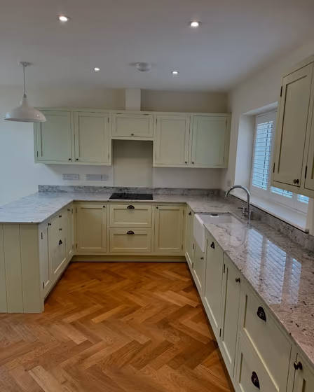 Farrow and Ball 206 on kitchen cabinets (4 photos)