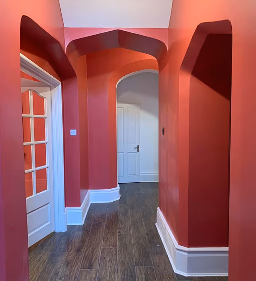 - Warm red shades add a vibrant and passionate touch to a room, creating a dynamic and energetic atmosphere, perfect for dining rooms, living rooms, and accent walls.