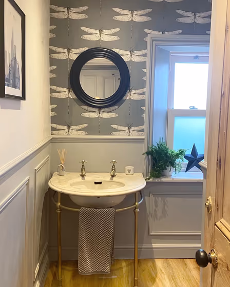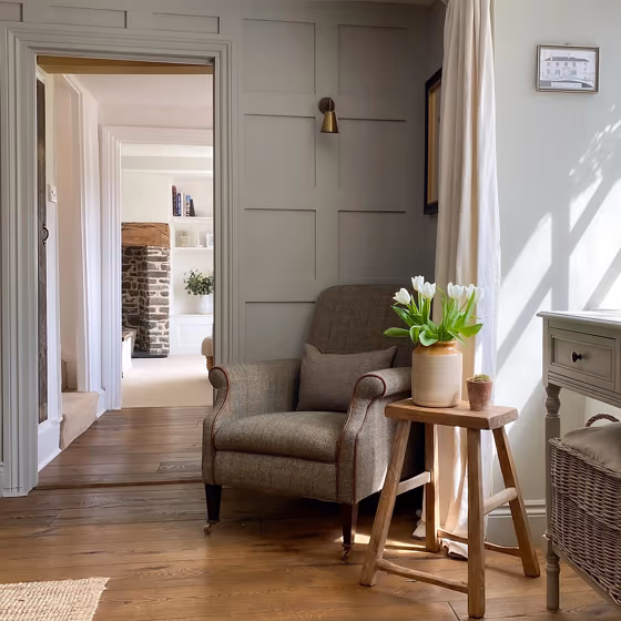 Lamp Room Gray creates a softer more lived in finish while retaining a sense of timelessness. Farrow and Ball describe it as 'a match to the original white which had dirtied down due to the trimming of the lamp wicks'.
