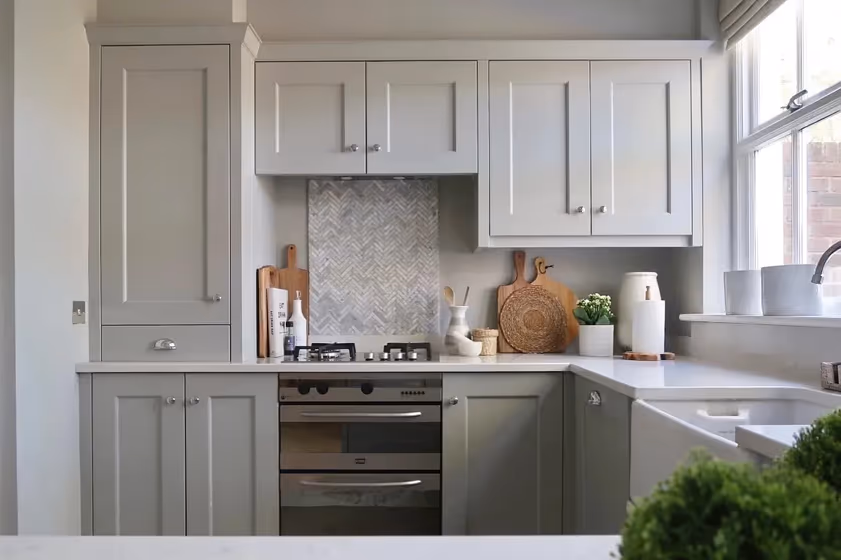 Farrow and Ball 88 on kitchen cabinets (3 photos)