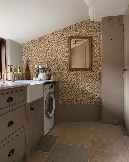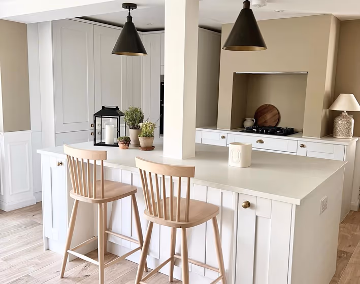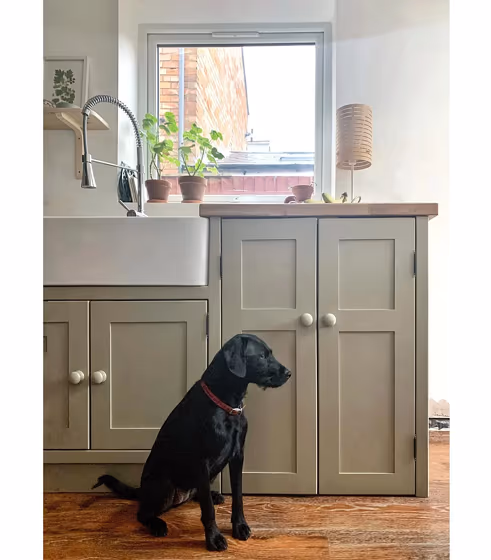 Farrow and Ball 17 on kitchen cabinets (3 photos)