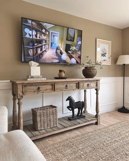 Check out this stunning Mid-tone color used in real living rooms. Explore how this Beige shade can create a unique space