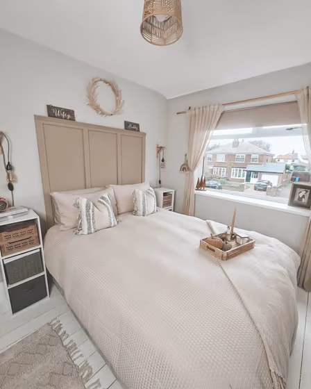 We’ve hand-picked a beautiful collection of photos of this amazing Beige shade used in real bedrooms. Take a look and imagine how this wonderful warm Mid-tone paint color could transform your own bedroom space.