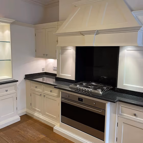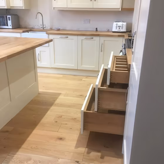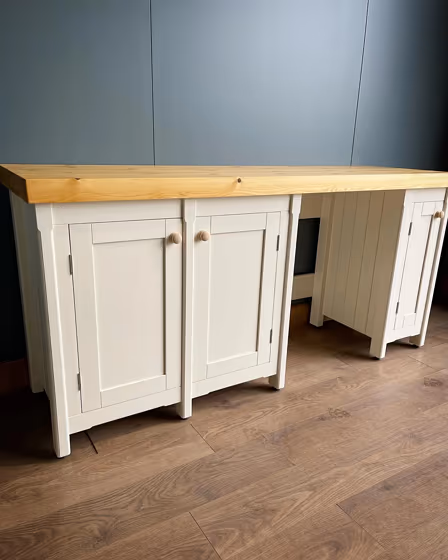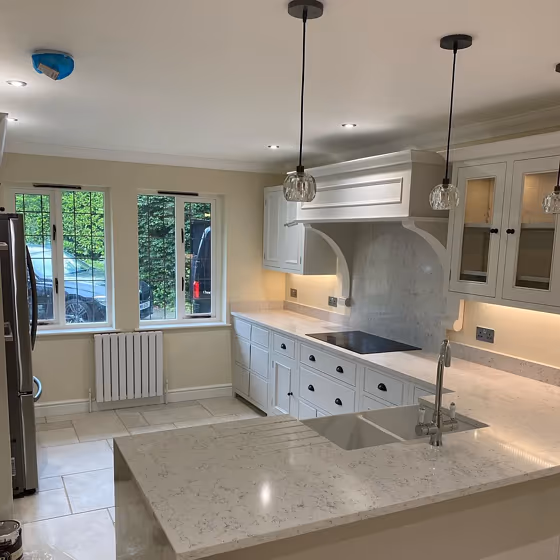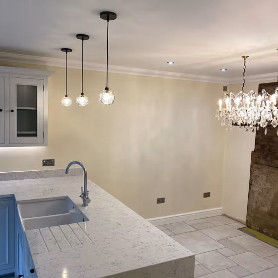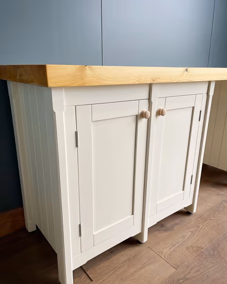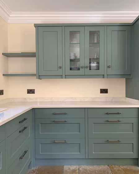 Farrow and Ball 59 on kitchen cabinets (4 photos)
