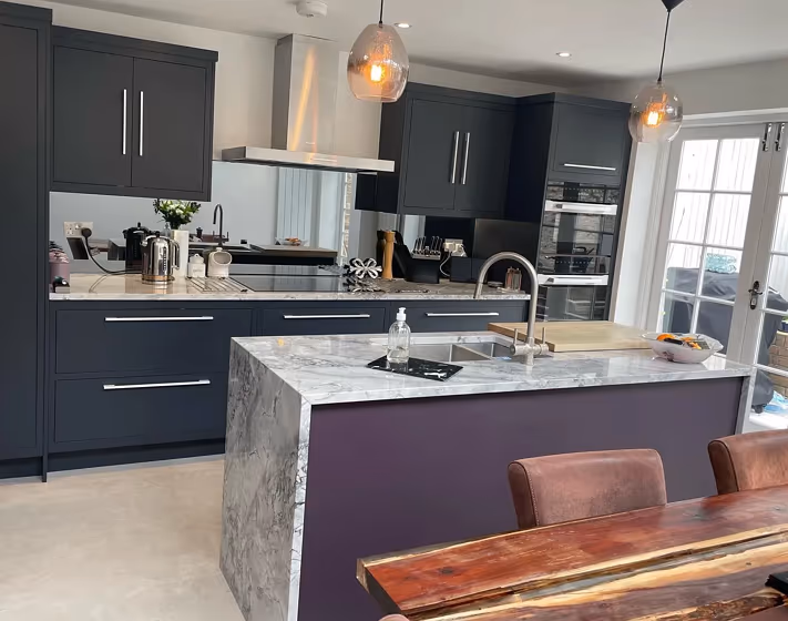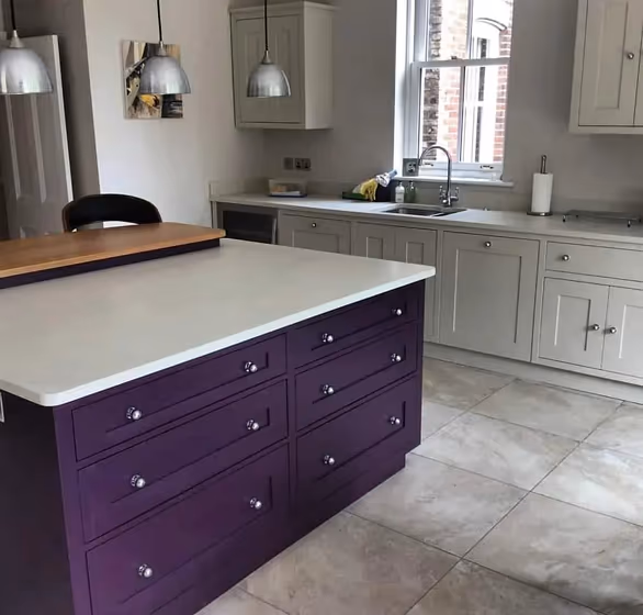 Farrow and Ball 254 on kitchen cabinets (3 photos)