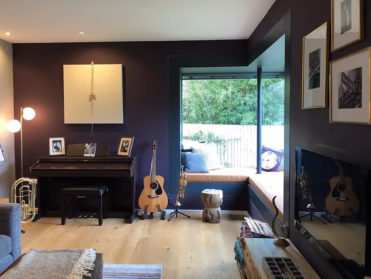 Check out this stunning Dark color used in real living rooms. Explore how this Purple shade can create a unique space