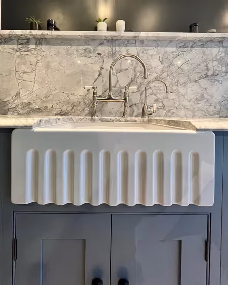 Want a stylish kitchen? View real-life photo examples of this fascinating cool hue is paired with backsplashes, countertops, and hardware.