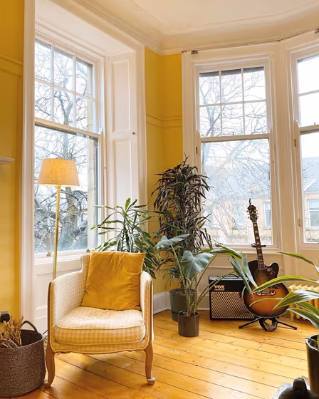 Farrow and Ball's Yellow Ground (218) exudes warmth and vibrance, creating a cheerful and inviting atmosphere in any space. This soft and sunny hue pairs beautifully with earthy tones such as terracotta and olive green, adding depth and contrast to the overall color palette. Complementing its sunny disposition, Yellow Ground (218) also looks striking alongside soft neutrals like ivory and taupe, creating a harmonious and balanced feel in the room. Whether used as a pop of color or as the main hue, this shade adds a touch of sunshine to any interior setting.