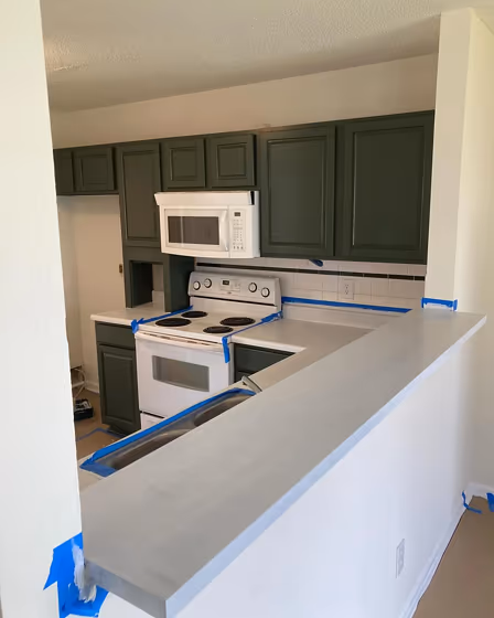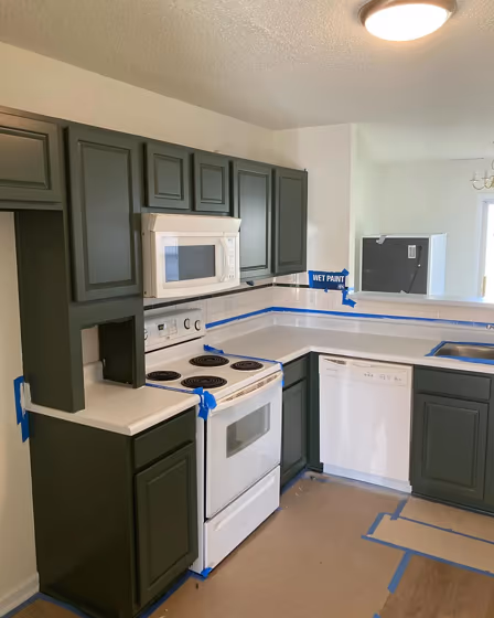 Sherwin Williams SW 7730 on kitchen cabinets (4 photos)