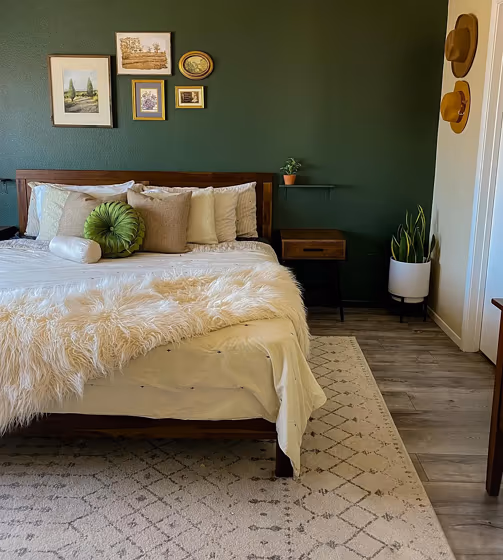 Welcome to a home adorned in the rich and inviting hues of Sherwin Williams Forestwood (SW 7730). This deep and sophisticated green tone brings a sense of tranquility and connection to nature. Ideal for living rooms, bedrooms, or home offices, Forestwood creates a cozy and calming atmosphere. Pair it with warm wood accents and plush textiles to enhance its elegance and create a retreat-like space. Embrace the beauty of the outdoors within your interior with Forestwood (SW 7730).