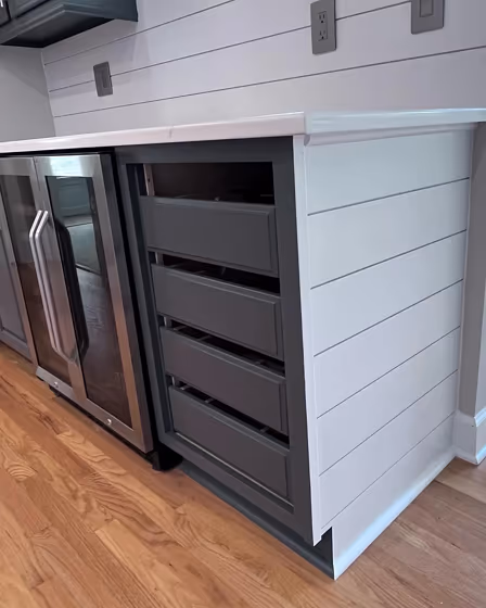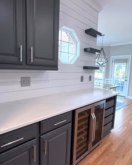 Sherwin Williams SW 9565 on kitchen cabinets (3 photos)