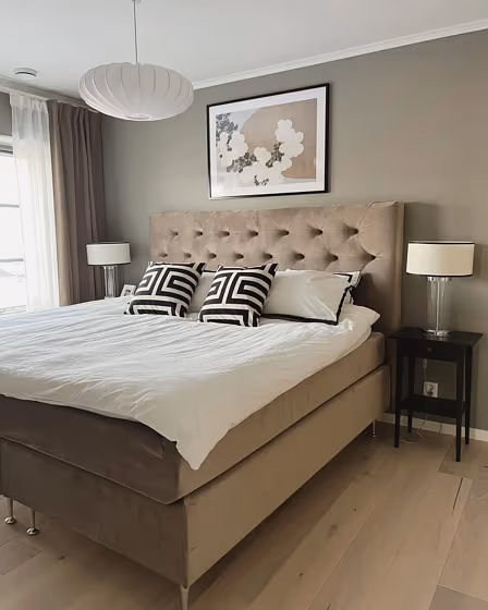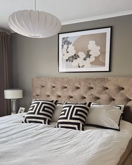 We’ve hand-picked a beautiful collection of photos of this amazing Beige shade used in real bedrooms. Take a look and imagine how this wonderful warm Mid-tone paint color could transform your own bedroom space.