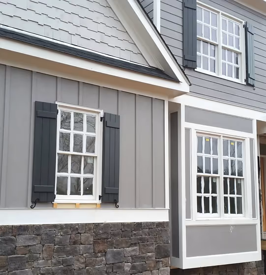 This color scheme is a combination of two shades that are opposite each other on the color wheel. The high contrast between these colors creates a vibrant and dynamic visual effect. For the color Gray Shingle with a orange hue, complementary colors are those with a blue hue close to 210, such as Sherwin Williams Mount Etna and Debonair.