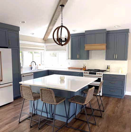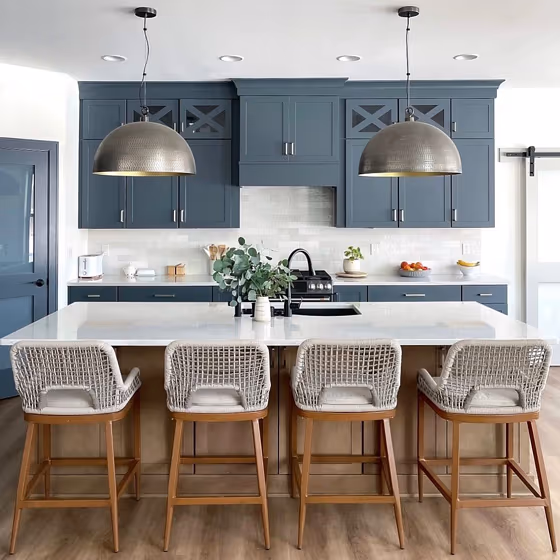 Want a stylish kitchen? View real-life photo examples of this fascinating cool hue is paired with backsplashes, countertops, and hardware.