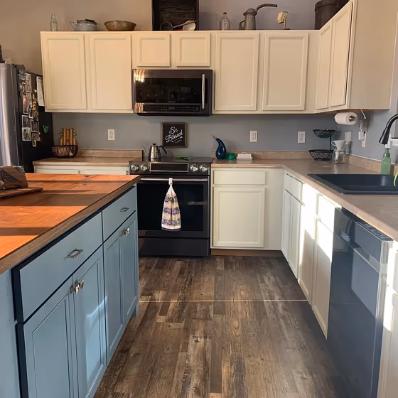 Sherwin Williams SW 7541 on kitchen cabinets (2 photos)