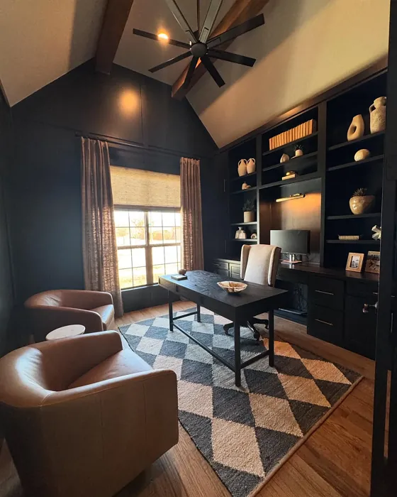 Sherwin Williams Greenblack SW 6994 is a sophisticated dark green hue that exudes elegance and charm. This rich color evokes a sense of opulence and pairs beautifully with complementary shades such as crisp whites, warm golds, and soft blush pinks. Greenblack adds a dramatic touch to any space and works well in both modern and traditional interiors. Its deep tones create a cozy and intimate atmosphere, making it ideal for bedrooms, libraries, or dining rooms. Incorporate touches of brass or velvet accents to enhance the luxurious feel of Greenblack SW 6994.
