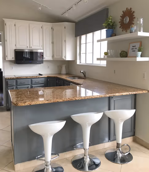 Want a stylish kitchen? View real-life photo examples of this fascinating cool hue is paired with backsplashes, countertops, and hardware.