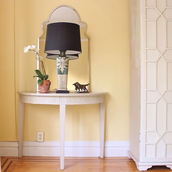 HC-4 Hawthorne Yellow by Benjamin Moore is inspired by America’s historic landmarks and is part of the Benjamin Moore Historical Collection. It brightens up a space that doesn't get a lot of natural lighting. Hawthorne Yellow is just the right balance of soft and bright but not too green or orange. It’s perfect not only for kitchens (it goes brilliantly with white and light gray cabinets) but also dining rooms, bathrooms, or dark nooks and crannies. For a traditional space pair with reds and greens or for a more contemporary space with shades of grey and beige.