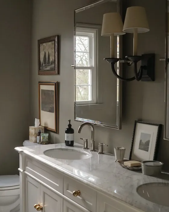 The color Honed Soapstone (SW 9126) by Sherwin Williams exudes a serene essence that complements various design styles. This sophisticated hue pairs beautifully with crisp whites to create a modern contrast or with soft blush tones for a delicate touch. Incorporating accents in deep navy or forest green can add depth and richness to spaces adorned with Honed Soapstone. Whether used as a statement wall color or as the backdrop for a cozy reading nook, this versatile shade effortlessly elevates any room's aesthetic.