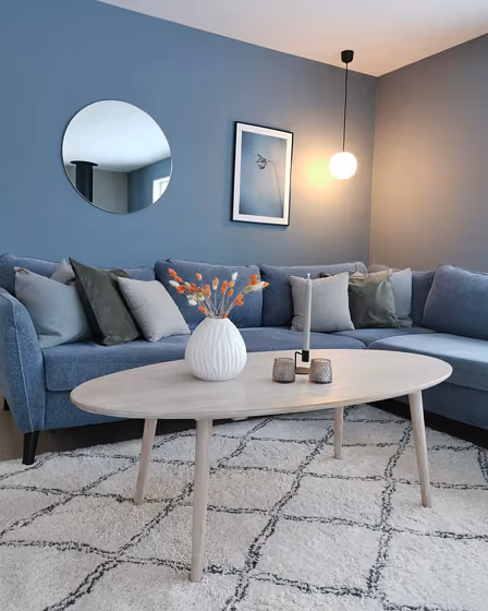 - Cool blue shades make a room feel sleek, fresh, and modern, perfect for bedrooms, bathrooms, and home offices where a sense of calm and sophistication is desired.