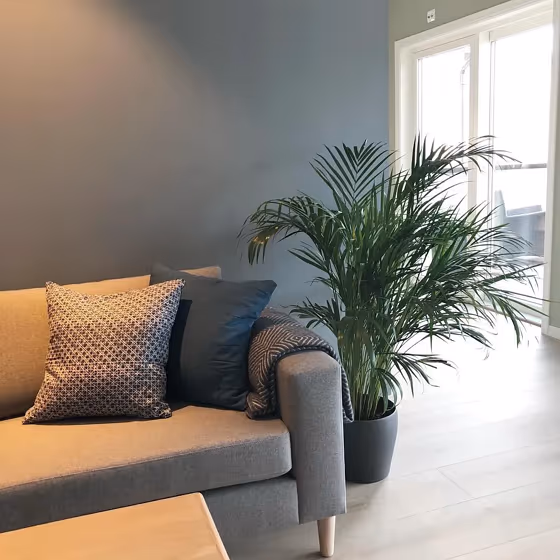 This color scheme is a combination of two shades that are opposite each other on the color wheel. The high contrast between these colors creates a vibrant and dynamic visual effect. For the color Icy Blue with a green hue, complementary colors are those with a red hue close to 17, such as Jotun Shade and Deep Soil.