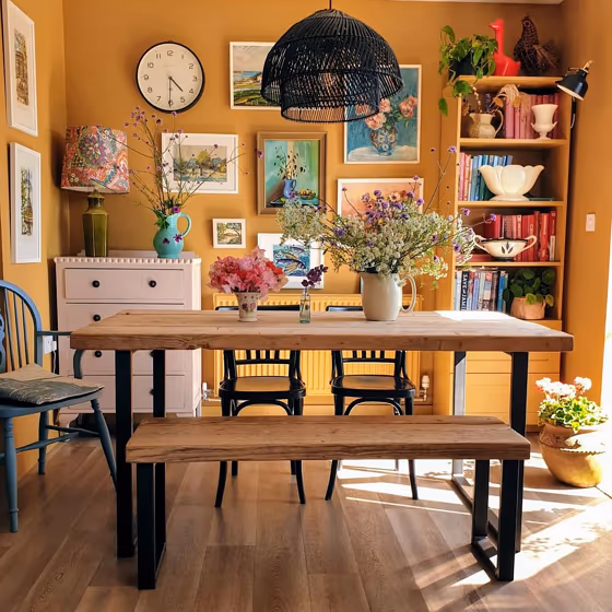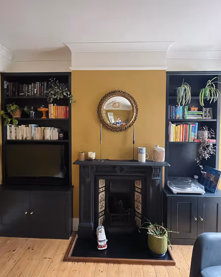 Check out this stunning Mid-tone color used in real living rooms. Explore how this Yellow shade can create a unique space