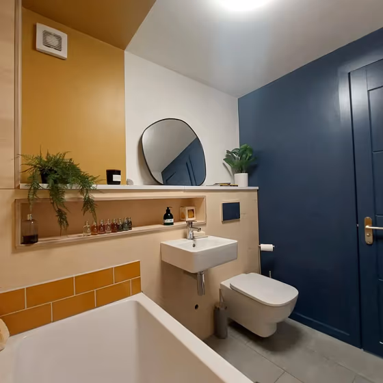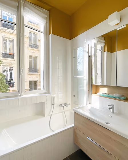 Act like a pro: Mixing warm and cool shades is a must have to get harmonius interior. Add accents that contrast with the primary color to create visual balance. If your walls are a warm color, don’t forget to add accent in cold colors (furniture, art, décor). A good practice is too use a complementary color scheme.