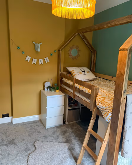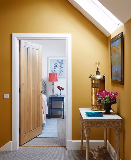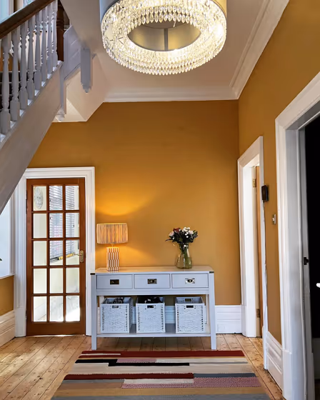 - Warm yellow shades bring a sunny and cheerful atmosphere to a space, making it feel lively and welcoming, perfect for kitchens, living rooms, and play areas.