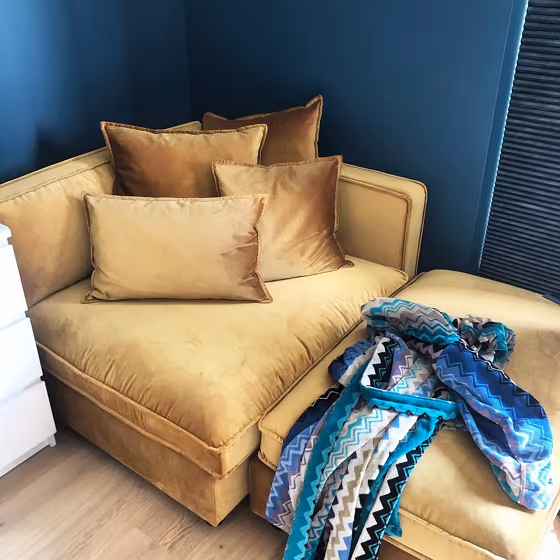 Act like a pro: Mixing warm and cool shades is a must have to get harmonius interior. Add accents that contrast with the primary color to create visual balance. If your walls are a warm color, don’t forget to add accent in cold colors (furniture, art, décor). A good practice is too use a complementary color scheme.