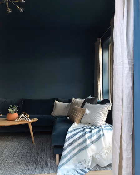 Check out this stunning Dark color used in real living rooms. Explore how this Blue shade can create a unique space