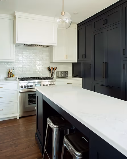 Want a stylish kitchen? View real-life photo examples of this fascinating cool hue is paired with backsplashes, countertops, and hardware.