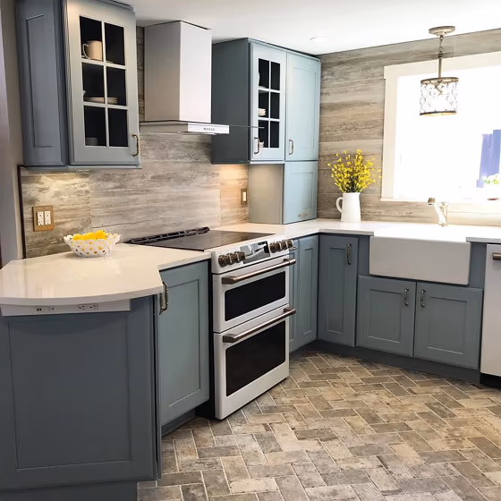 Want a stylish kitchen? View real-life photo examples of this fascinating cool hue is paired with backsplashes, countertops, and hardware.