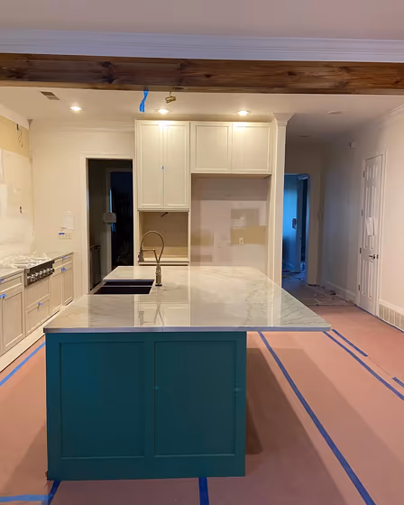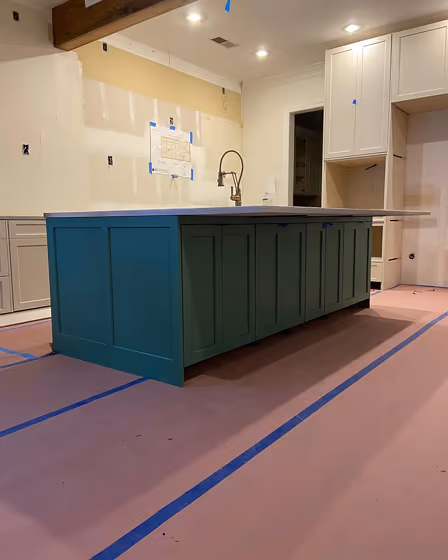 Sherwin Williams SW 6459 on kitchen cabinets (3 photos)