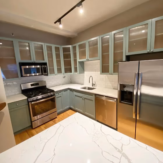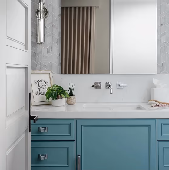 Want a stylish kitchen? View real-life photo examples of this fascinating cool hue is paired with backsplashes, countertops, and hardware.