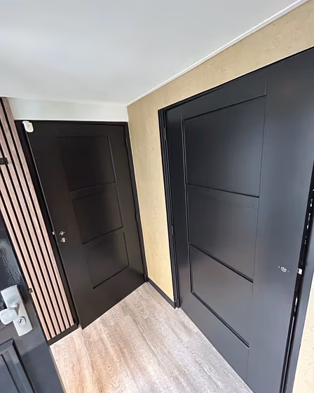 Let’s dive into a full Jet black paint color review. Take a look at pictures of real interiors and exteriors painted with beautiful RAL 9005. Find out if this gorgeous cold grey paint color would look great on your living room walls or trims, kitchen cabinet, bedroom accent wall, bathroom or house exterior.
