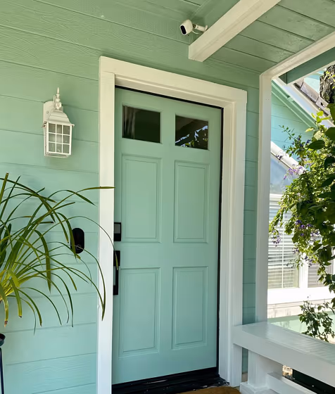 Looking for a fresh new look for your house exterior or starting from skretch? We’ve collected pictures of real-life homes that have been painted with this cool hue. Find inspiration for your house’s exterior, front doors, gates, shutters, frames or windows.