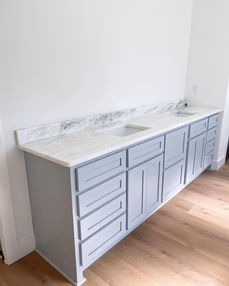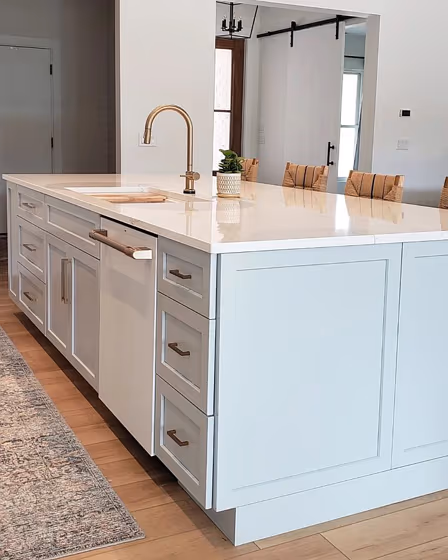 Want a stylish kitchen? View real-life photo examples of this fascinating cool hue is paired with backsplashes, countertops, and hardware.